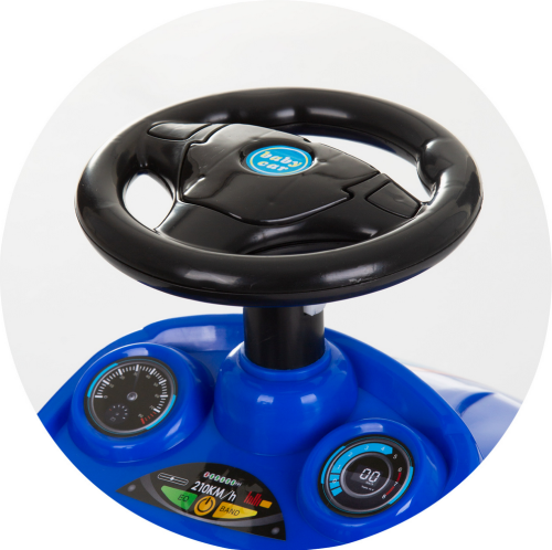 stimuluje rozvoj motorických dovedností a koordinaci pohybu dítěte, když dítě sedí v odrážedle, může být autíčko poháněno nohama dítěte, volant se volně otáčí a dítě může provádět lehké manévry, prostorné sedadlo, úložný prostor pod sedadlem, pohodlná opěrka zad, zábavné melodie na volantu - pro provoz jsou třeba 2 ks 1,5V baterie AA (nejsou součástí balení).