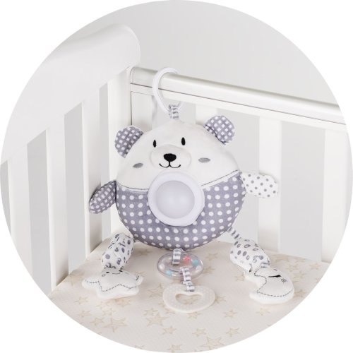 15 melodií a písní, vestavěné světelné efekty, kompaktní - vhodná pro kočárek i postýlku, jednoduché ovládání dvěma tlačítky, pro provoz jsou potřeba 2ks baterie typu AAA (nejsou součástí balení).