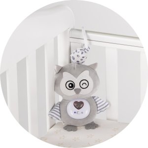 15 melodií a písní, vestavěné světelné efekty, kompaktní - vhodná pro kočárek i postýlku, jednoduché ovládání dvěma tlačítky, pro provoz jsou potřeba 2ks baterie typu AG13 (jsou součástí balení).