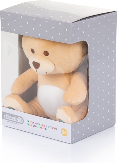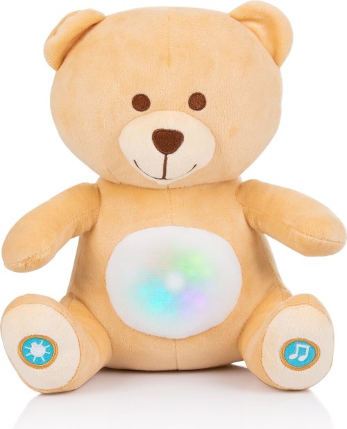Přehrává 3 ukolébavky. Noční lampička zabudovaná v břiše zvířátka svítí v různých barvách. Díky páskům na suchý zip na zadní straně hračky ji lze připevnit k dětské postýlce, posteli, ohrádce, kočárku, houpačce, vysoké židli. Vyrobeno z vysoce kvalitního plyše - velmi měkký a jemný. Baleno v dárkové krabičce.