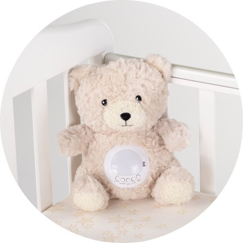 10 jemných ukolébavek, 3 projekční kryty: hvězdná obloha, oceán a noční lampička, 7 režimů světla, 6 druhů bílého šumu pro snadnější usínání, senzor pláče – automatické utišení dítěte, dobíjení přes USB Type-C.