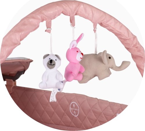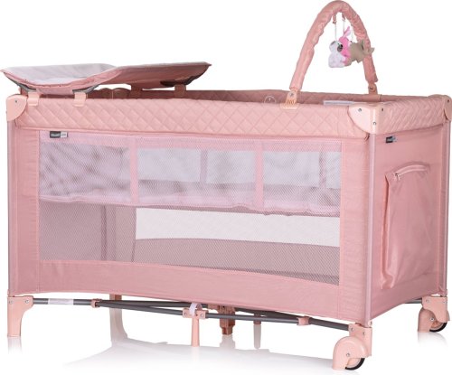 2v1 - slouží jako postýlka a jako pohodlná ohrádka, vhodná pro novorozence a děti do 15 kg, vyrobena z vysoce kvalitní tkaniny, 2 polohy nastavení výšky matrace, boční vchod se zipem, dvě kolečka s brzdami pro snadnější přemisťování postýlky, přebalovací pultík, organizér pro příslušenství je součástí přebalovacího pultu, velká postranní kapsa na hračky a jiné nezbytnosti, boční kapsa na zip, závěsný oblouk se třemi plyšovými hračkami, snadné skládání a rozkládání, balení obsahuje: skládací cestovní postýlku, druhou vrstvu s měkkou podložkou, přebalovací podložku, přihrádku na doplňky, závěsný oblouk se třemi plyšovými hračkami, tašku na přenášení a skladování.