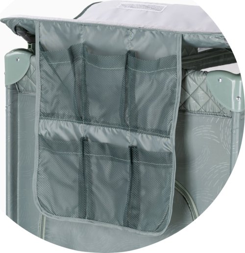 2v1 - slouží jako postýlka a jako pohodlná ohrádka, vhodná pro novorozence a děti do 15 kg, vyrobena z vysoce kvalitní tkaniny, 2 polohy nastavení výšky matrace, boční vchod se zipem, dvě kolečka s brzdami pro snadnější přemisťování postýlky, přebalovací pultík, organizér pro příslušenství je součástí přebalovacího pultu, velká postranní kapsa na hračky a jiné nezbytnosti, boční kapsa na zip, závěsný oblouk se třemi plyšovými hračkami, snadné skládání a rozkládání, balení obsahuje: skládací cestovní postýlku, druhou vrstvu s měkkou podložkou, přebalovací podložku, přihrádku na doplňky, závěsný oblouk se třemi plyšovými hračkami, tašku na přenášení a skladování.