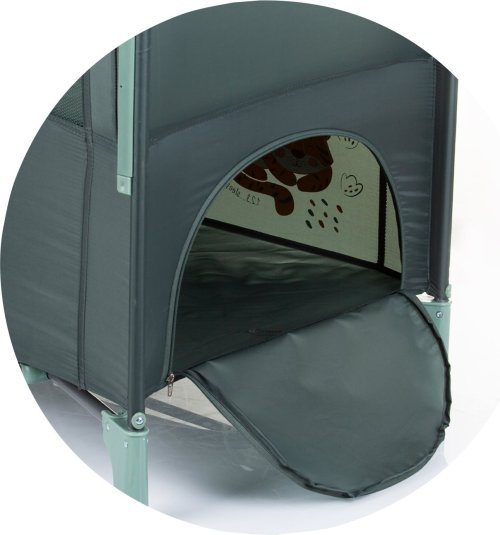 postýlka je vhodná pro novorozence a děti s hmotností do 15 kg, atraktivní zvířecí motiv, sklopná strana – 2 různé úrovně, na jedné krátké straně kapsa na příslušenství, vstup na zip na jedné straně postýlky, dvě kolečka s brzdou pro snadný přesun, snadno se složí a rozloží, taška na přenášení a skladování.