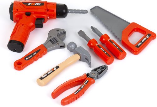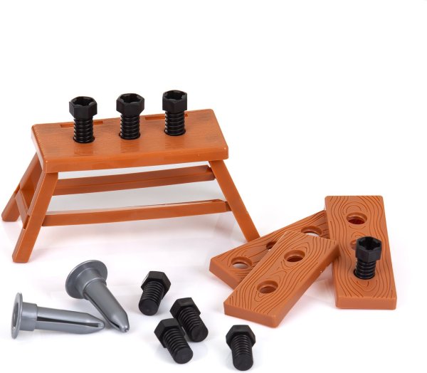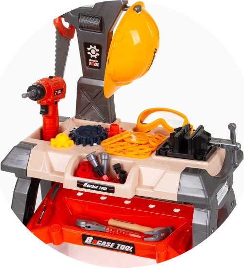 obsahuje 63ks příslušenství - ponk, vrtačku, nářadí, helmu a další doplňky, interaktivní hračka se světly, pro provoz jsou třeba baterie: 2ks AA (nejsou součástí balení), rozměry výrobku: 71 x 51 x 29 cm.