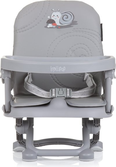 Přenosná jídelní židlička (Booster) Lollipop - je vhodná pro samostatně sedící děti do 3 let a 15 kg. Lze ji připevnit pásy ke kuchyňské židli. Požadované rozměry židle: sedák šířka min. 39 cm, hloubka min. 34 cm; opěrka židle: výška min. 32cm, max. 62cm, šířka min 39cm. Vlastnosti: