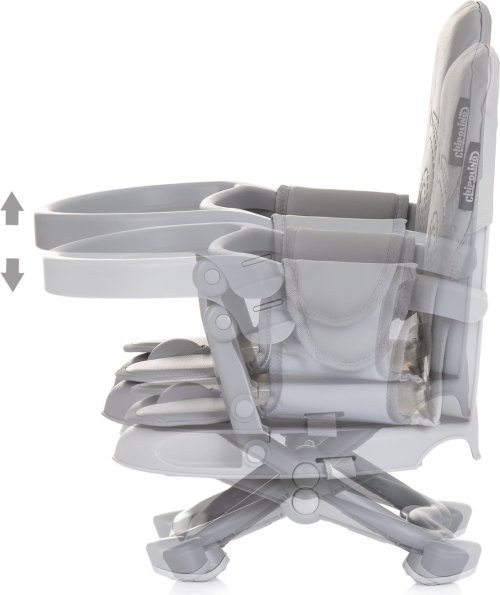 pro samostatně sedící děti, široký a pohodlný sedák 36 x 30 cm, bezpečnostní pásy, plastový odnímatelný podnos, snadné čištění, výškově nastavitelná do 3 poloh.