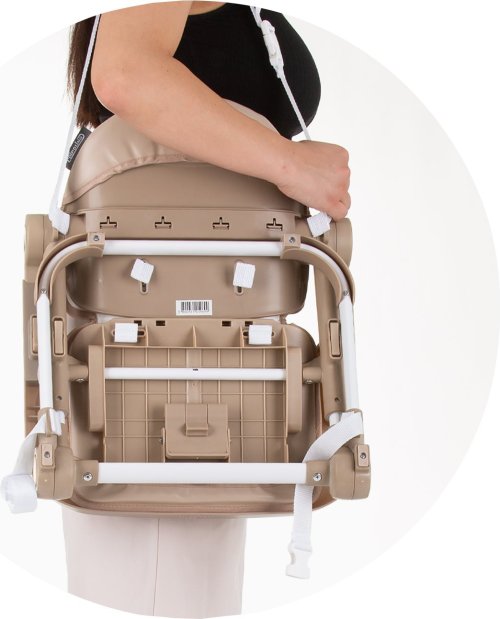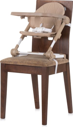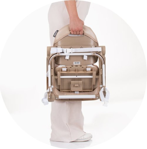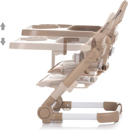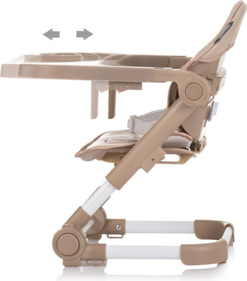 pro samostatně sedící děti bez pomoci, široký a pohodlné sedadlo, snadná instalace na židli pro dospělé pomocí pásů, bezpečnostní pásy pro dítě, potah z vysoce kvalitní kůže, výškově nastavitelná, plastový nastavitelný a odnímatelný podnos, snadné čištění, pás a rukojeť pro přenášení, velmi kompaktní skládání.