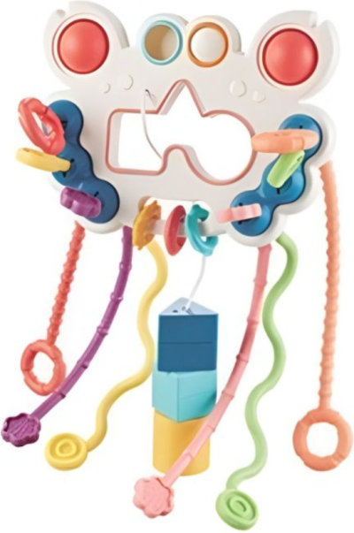 rozvíjí jemnou motoriku a zlepšuje logické myšlení, pestré barvy a rozmanité textury přitahují pozornost dítěte, neobsahuje toxické materiály.