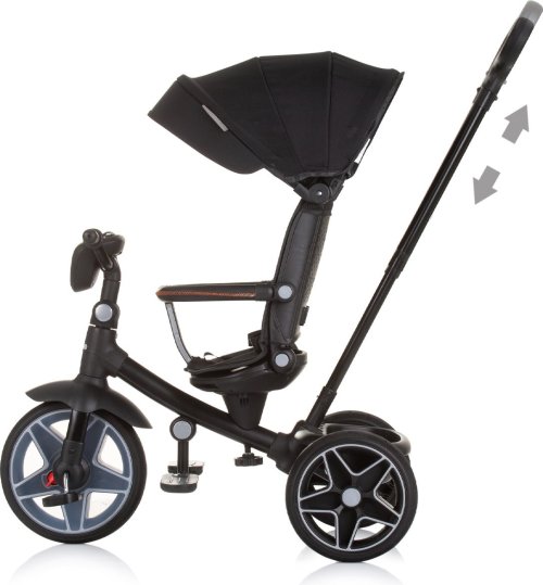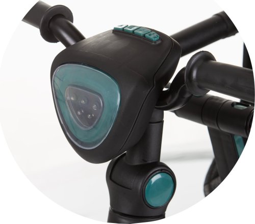 multifunkční výrobek 2v1 se rychle změní v tříkolku pro samostatně jezdící děti, vhodné pro děti od 1,5 roku do max hmotnosti 25 kg, odejmutím stříšky, rodičovské rukojeti a dětského madla se tříkolka přizpůsobí pro větší dítě, tlačí-li tříkolku dospělý a dítě položí nohy na opěrku nohou, lze pedály předního kola deaktivovat (volnoběžný režim) , otočné sedadlo o 360° (po směru a proti směru jízdy), kvalitní gumová kola s vynikající nosností a odolností proti opotřebení, výškově nastavitelná a odnímatelná tlačná rukojeť pro rodiče, odnímatelná skládací stříška se sluneční clonou a látkou s ochrannou proti slunci FPS50+, hudební box se světly na řídítkách (pro provoz je třeba 3 ks 1,5V baterie AA) , široké a pohodlné sedadlo s měkkým polstrovaným textilním potahem, 5bodové bezpečnostní pásy s ramenním polstrováním, odnímatelné bezpečnostní dětské madlo s potahem z ekokůže, skládací a pohyblivá opěrka nohou, pohyblivé horní opěrky nohou lze používat v obou směrech, brzdové pedály na zadních kolech, přední kolo s blatníkem a ochranným krytem proti zachycení dětských nohou, úložný koš vzadu (max zatížení 0,5 kg).