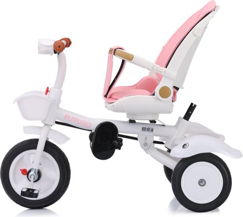 Multifunkční výrobek Chipolino Tříkolka se stříškou Futuro se 2 různými způsoby použití - rodič tlačí dítě nebo dítě samo řídí hračku pomocí pedálů. Tříkolka se stane skvělým společníkem, který poroste spolu s dítětem.