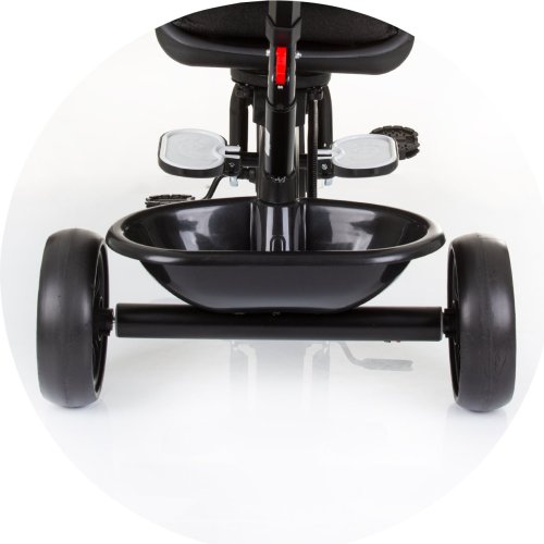 Multifunkční výrobek se 2 různými způsoby použití - rodič tlačí dítě nebo dítě samo řídí a jede pomocí pedálů, stříška, rodičovská rukojeť a ochranné madlo jsou odnímatelné, otočné sedadlo o 360° - po směru nebo proti směru jízdy, široké a pohodlné sedadlo s měkkým polstrováním a textilním potahem, odnímatelné bezpečnostní madlo, bezpečnostní pásy, 2 polohy naklonění sedadla, nastavitelná rodičovská rukojeť do 2 poloh, držák na nápoje, skládací opěrky nohou na rámu, skládací stříška se sluneční clonou, úložný koš vpředu a vzadu.