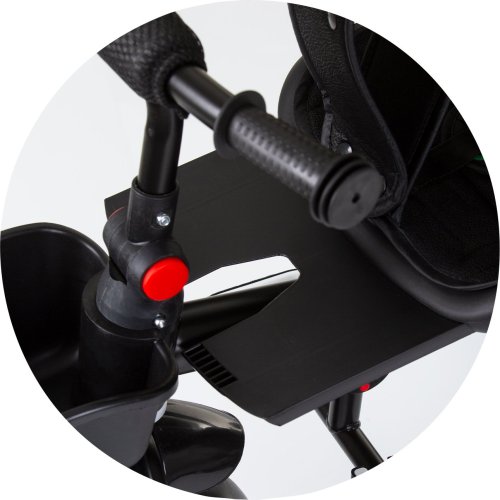 Multifunkční výrobek se 2 různými způsoby použití - rodič tlačí dítě nebo dítě samo řídí a jede pomocí pedálů, stříška, rodičovská rukojeť a ochranné madlo jsou odnímatelné, otočné sedadlo o 360° - po směru nebo proti směru jízdy, široké a pohodlné sedadlo s měkkým polstrováním a textilním potahem, odnímatelné bezpečnostní madlo, bezpečnostní pásy, 2 polohy naklonění sedadla, nastavitelná rodičovská rukojeť do 2 poloh, držák na nápoje, skládací opěrky nohou na rámu, skládací stříška se sluneční clonou, úložný koš vpředu a vzadu.