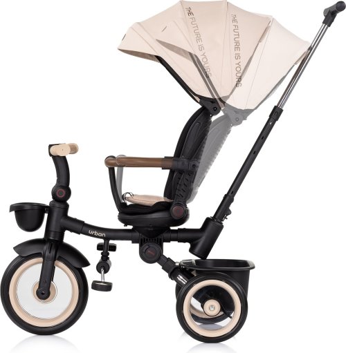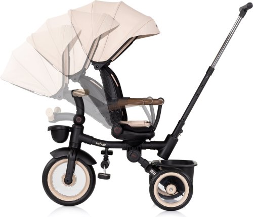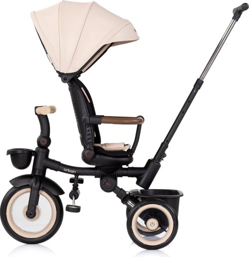 multifunkční výrobek 2v1 se rychle změní v tříkolku pro samostatně jezdící děti, tříkolku může pohánět dítě nebo ji tlačí dospělý pomocí rukojeti, vysoce kvalitní gumová kola s výbornou odolností proti opotřebení, sedadlo se otáčí o 360° - umožňuje dvě polohy (po i proti směru jízdy), výškově nastavitelná rukojeť do 3 poloh, opěradlo lze sklopit až do lehu v obou směrech, sedadlo je vybaveno bezpečnostním nárazníkem s potahem z eko kůže, který lze odejmout, opěrka nohou – pedály lze odejmout z předního kola a nainstalovat na opěrku nohou, nastavitelná stříška se sluneční clonou a síťkou, velké sedadlo s měkkým a pohodlným textilním potahem, 5bodový bezpečnostní pás s měkkými ramenními polštářky, úložný koš vpředu i vzadu, blatník na předním kole, brzdové pedály na zadních kolech, průhledný kryt předního kola, který zabraňuje zachycení dětských nohou, řídítka se světlem (pro provoz jsou potřeba 2 ks baterií typu AAA,1,5 V, které nejsou součástí balení, sklopné opěradlo pro kompaktní skladování, skládací zadní část tříkolky – pro snadné uskladnění.