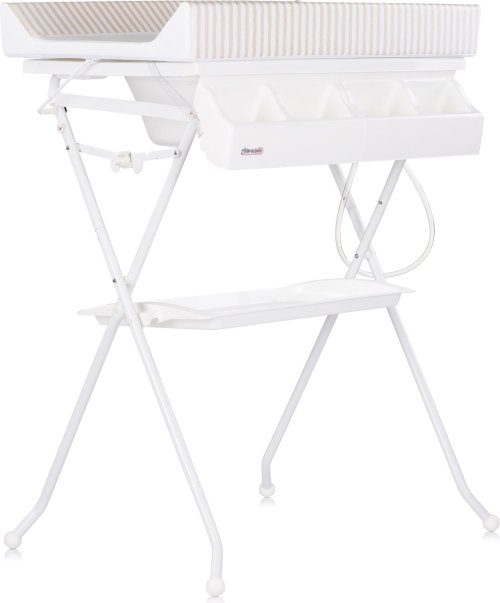 výrobek lze použít jako přebalovací pult a po sejmutí přebalovací podložky jej můžete použít jako vaničku, skládací stojan na vaničku pro pohodlí rodičů, přihrádka na příslušenství, kterou lze použít k uskladnění potřebných věcí, přebalovací podložku lze odklopit na stranu, hadice a zátka pro snadné vypuštění vody, rozměry: 80 × 61 × 103 cm.
