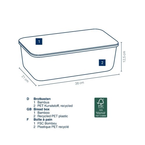 • materiál: plast / bambusové dřevo- víko může sloužit zároveň jako prkénko- rozměry: 37,8 x 21,2 cm- výška: 14,1 cm- barva: bílá / dřevo