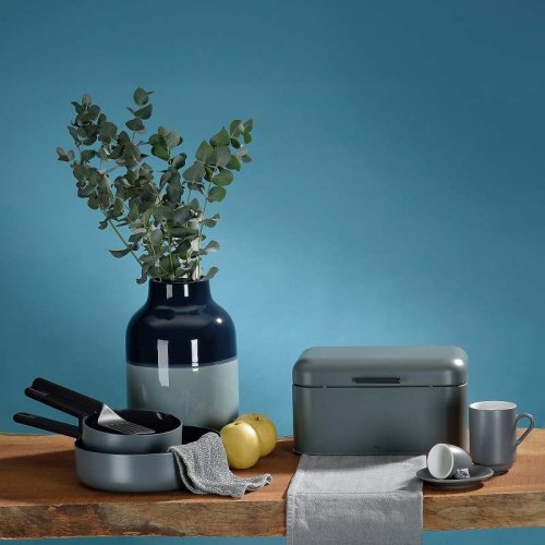 Stylový a praktický chlebník FRISCO od značky KELA je ideálním doplňkem do každé moderní kuchyně. Tento kovový chlebník v elegantní modré barvě se postará o to, aby vaše pečivo zůstalo déle čerstvé a chráněné. Díky svým kompaktním rozměrům 30 × 18 × 16,5 cm se snadno vejde i do menších prostor, a přesto nabízí dostatek místa pro uložení chleba, housek či baget.