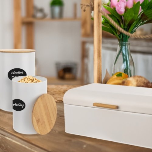 Chlebovka s odklápěcím víkem na uložení pečiva... Materiál plech, bambus. Rozměry 42 x 24 x 16.5 cm. EAN 8592381176631