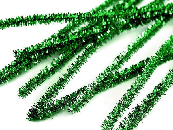 Chlupaté drátky na tvoření lurexové Ø6 mm délka 30 cm - zelená trávová (10 ks)