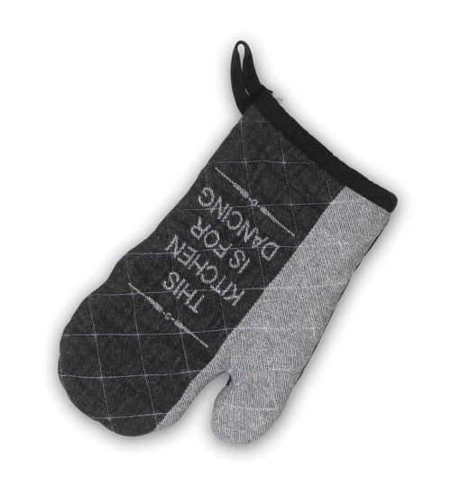 Z kolekce kuchyňského textilu Gianna: kvalitní chňapky jsou vyrobeny ze 100% bavlny, tkané, v barvě černá/bílá. Výrazným detailem je výrazně umístěný nápis na přední straně: This Kitchen is for Dancing. Rozměry: 28 x 18 cm. Rukavice do trouby je součástí rozsáhlé série kuchyňských textilií z kela.100% bavlna 28x18cm