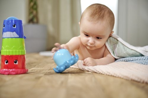 Chobotnička do vany pro zábavnější koupání. Při ponoření do vody se naplní vodou, přidržením otvorů na hlavičce a vyzvednutím chobotničky z vody, voda zůstane uvnitř. Následným uvolněním voda vyteče spodem jako "sprška". Velikost 10 cm.