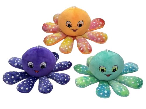 Chobotnička plyšová 10 cm svítící ve tmě - mix barev (oranžová, fialová, zelená)