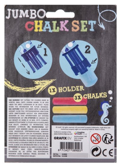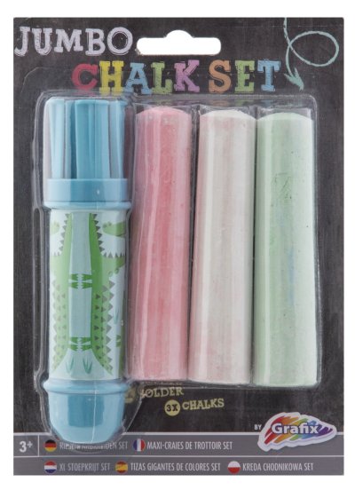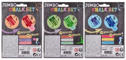 Chodníkové křídy Jumbo + držík 3 ks, tři různé druhy.