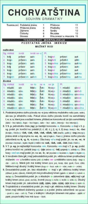 Koncentrovaný přehled sumarizuje učební látku – tvarosloví, skladba, výslovnost a pravopis. Přehledné členění, grafická úprava a volba barev umožňuje rychlou orientaci v textu a snadnější zapamatování.