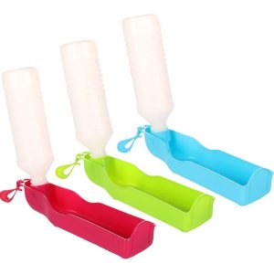 Cestovní napáječka se skládá z láhve a uzávěru s výklopnou miskou.