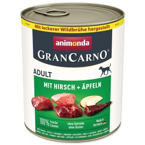 Kompletní krmivo pro dospělé psy Složení 49% vepřové (srdce, játra, plíce, maso), 29% zvěřinový vývar, 15% jelen (maso), 4% jablka, minerální látky, světlicový olej.