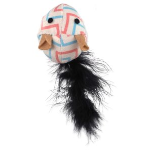 Lákavá hračka v podobě myši s pírkem a šantou kočičí.