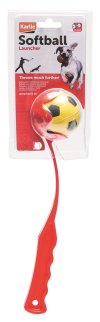 Vrhač míčků Karlie je vyroben z odolného plastu v oranžovo-červeném provedení.
