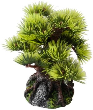 Dekorace do akvária v podobě oblého kamene, který je porostlý mechem.