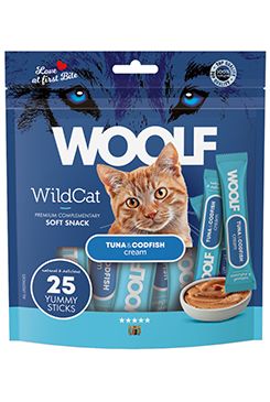 Doplňkové krmivo pro kočky, krémový pamlsek s příchutí tuňáka a tresky. Každé balení obsahuje 25 lahodných tyčinek o hmotnosti 14 gramů.