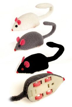 46565Natahovací hračka pro kočky - Myš super rychlá, je myška na čtyřech kolečkách, která jsou natahovací a fungují na strvačník.