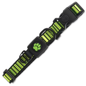 Pevný nylonový obojek s gumovou sponou k nastavení velikosti.