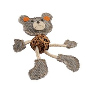 Odolná a robustní plátěná hračka ve tvaru medvěda je vyrobena z pevného plátna.