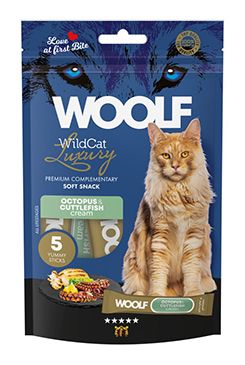 Doplňkové krmivo pro kočky, luxusní krémový pamlsek s chobotnicí a sépií. To nejlepší z moře, podávané přímo v misce.