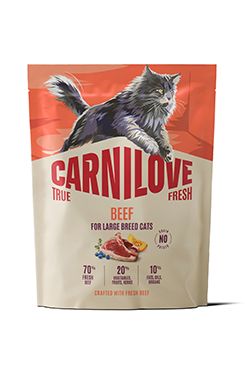 Tato receptura s čerstvým hovězím masem je ideální pro dospělé kočky velkých plemen a plně respektuje jejich přirozené výživové potřeby.