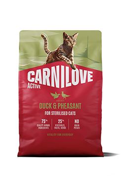 Tato energeticky vyvážená receptura s kachním a bažantím masem respektuje přirozené výživové potřeby sterilizovaných koček.