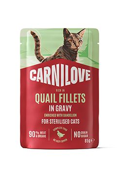 Jemné masové filety v chutném želé pro dospělé kočky s křepelkou, jemnou bílkovinou ze zvěřiny, která respektuje přirozené výživové potřeby koček.