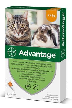 Advantage 40 mg roztok pro nakapání na kůži – spot-on pro malé kočky a králíky (≤ 4 kg)