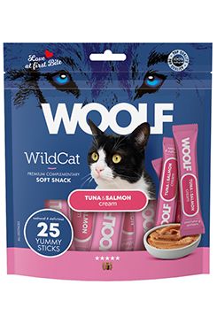 Doplňkové krmivo pro kočky, krémový pamlsek s příchutí tuňáka a lososa. Každé balení obsahuje 25 lahodných tyčinek o hmotnosti 14 gramů.