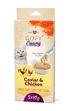 COBBYS PET SOFY Creamy Caviar&Chicken 5x10gDoplňkové krmivo pro kočky, masová krémová pochoutka s kaviárem a kuřecím masem, ideální k natření na lízací podložku nebo přímo do úst nebo do misky. Složení: kuřecí maso, kaviár, tapiokový škrob, xantanová guma, taurin, rybí olej, multivitamíny.Analytické složky: N-látky (min) 6,0%, oleje a tuky (min) 0,5%, vláknina (max) 0,5%, popel (max) 2,0%, vlhkost (max) 90%. Krmný návod: Můžete natřít na lízací podložku, ale mohou se podávat i tradičním způsobem: přímo do úst nebo do misky.