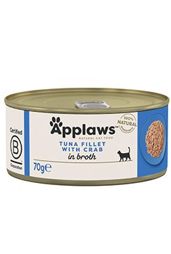 Vynikající chutná kombinace pro milovníky rybích specialit! Applaws Cat Tuňák s krabem je konzerva pro kočky plná celých kousků tuňáka a luxusního krabího masíčka.