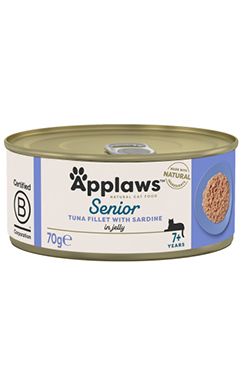 Jemné maso z tuňáka chuťově doladěné sardinkami ve zjemňujícím želé je ideální pro kočičí seniory.