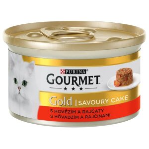Gourmet Gold Savoury Cake s hovězím a rajčaty je kompletní krmivo pro dospělé kočky.