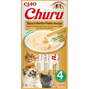Churu masové pyré pro kočky s tuňákem a s mořskými plody.
