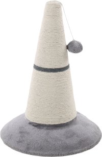 Designové škrabadlo pro kočky s hračkou, kombinace kaučukového dřeva, sisalu, juty a mořské trávy.