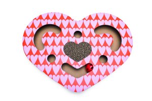 Podložka s kartonovým škrábadlem, kuličkovou dráhou a catnipem.
